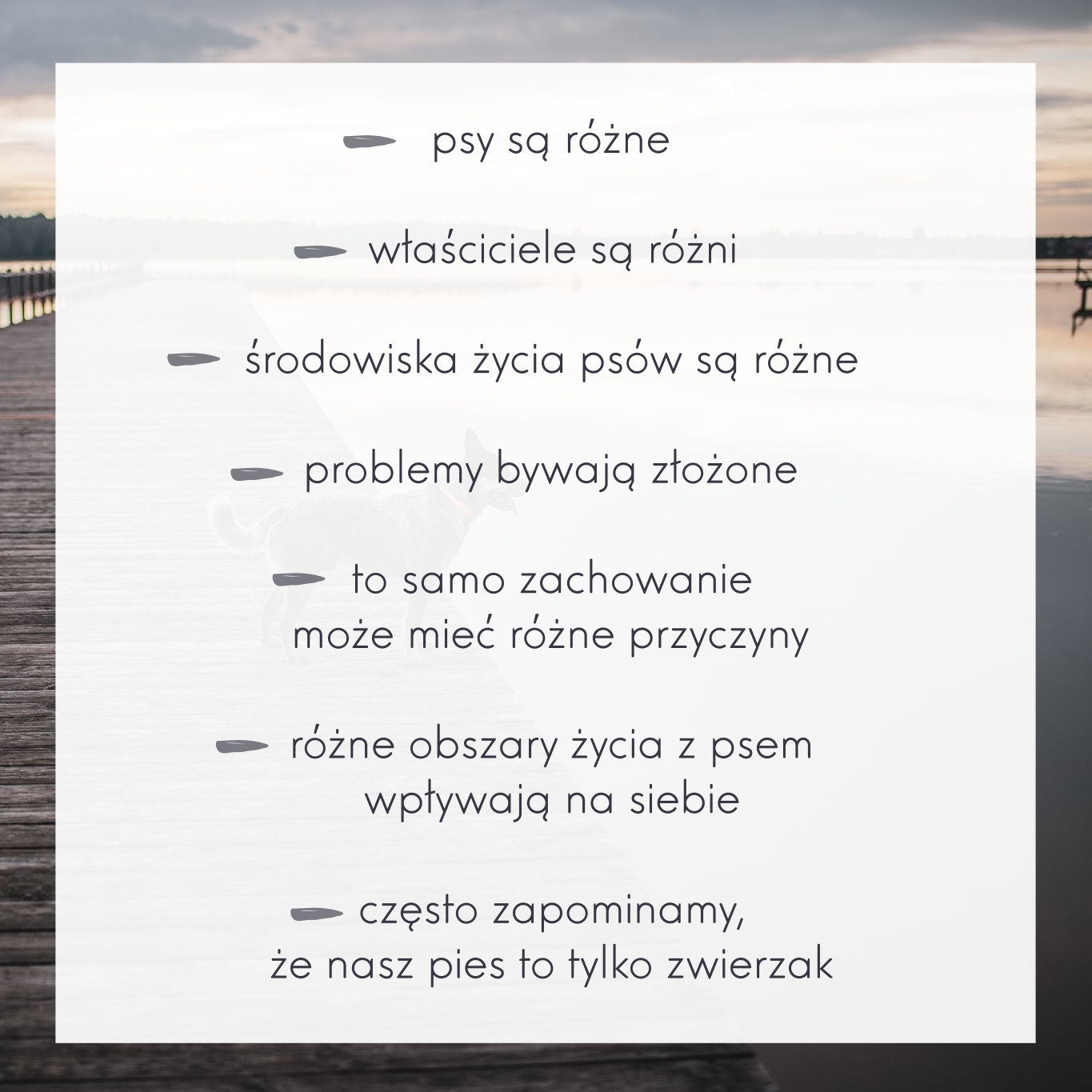 Należy mieć z tyłu głowy ten szacunek do psa jako zwierzaka i świadomość, że nie wszystkiego czego chcemy możemy psa nauczyć. A jeśli tak to nie wszystkiego warto, bo może będzie to trwało kilka lat lub będzie to nieetyczne, lub nietrwałe i ten problem będzie mógł łatwo wrócić. Jeśli chcemy zrobić z psa ogrodową ozdobę, czy zabawkę dla dziecka, to zastanówmy się, czy w ogóle pies to dobry pomysł dla nas.
